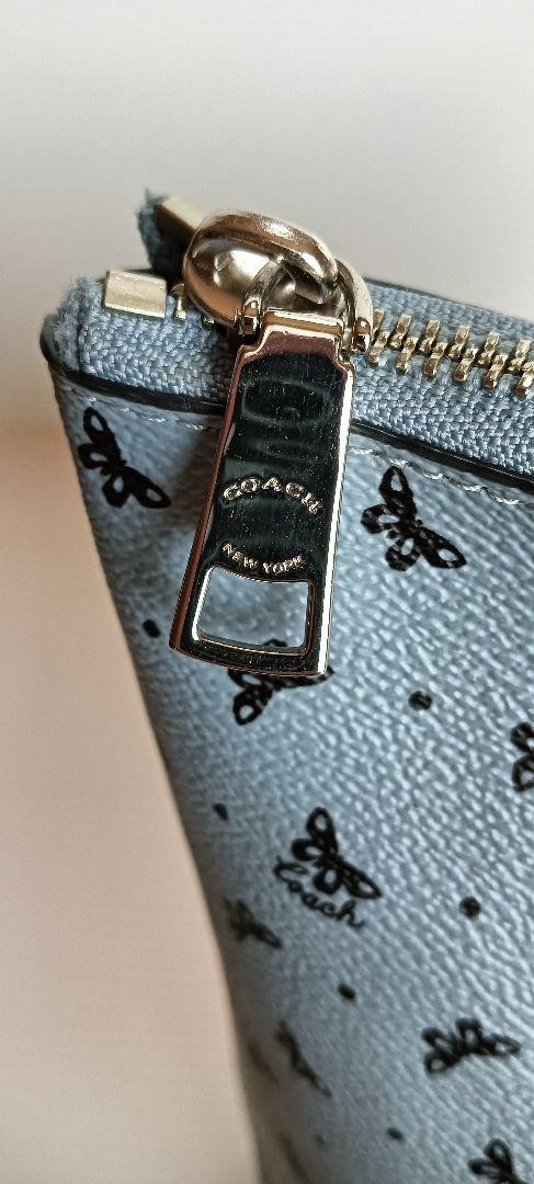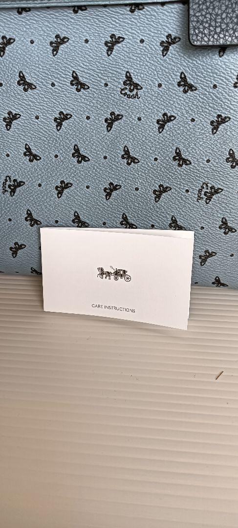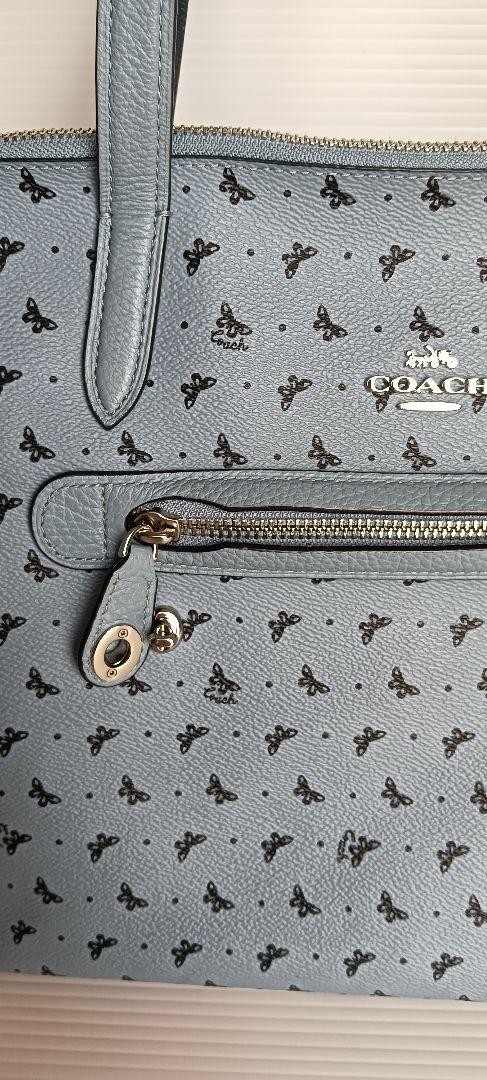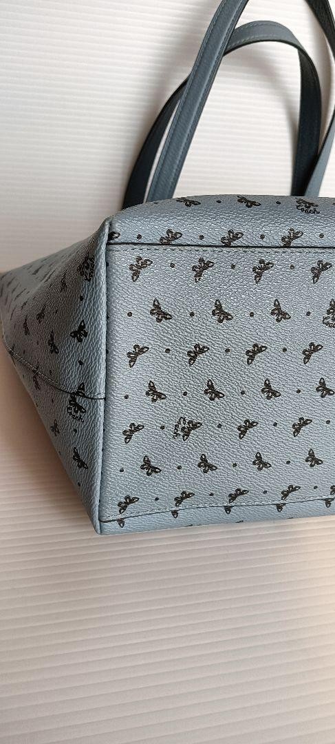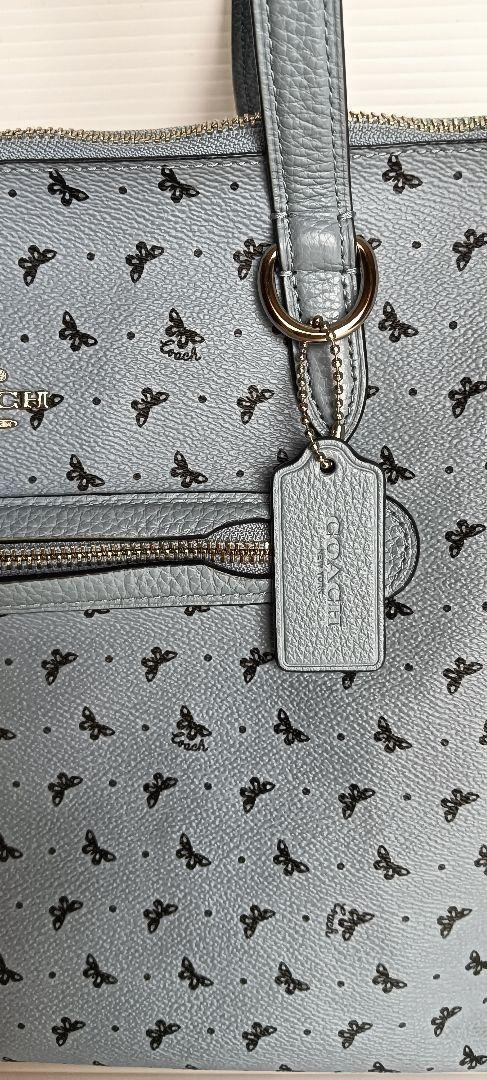 Coach Tote Bag Butterfly All-over Pattern Leather Light Blue Logo Charm Shoulder