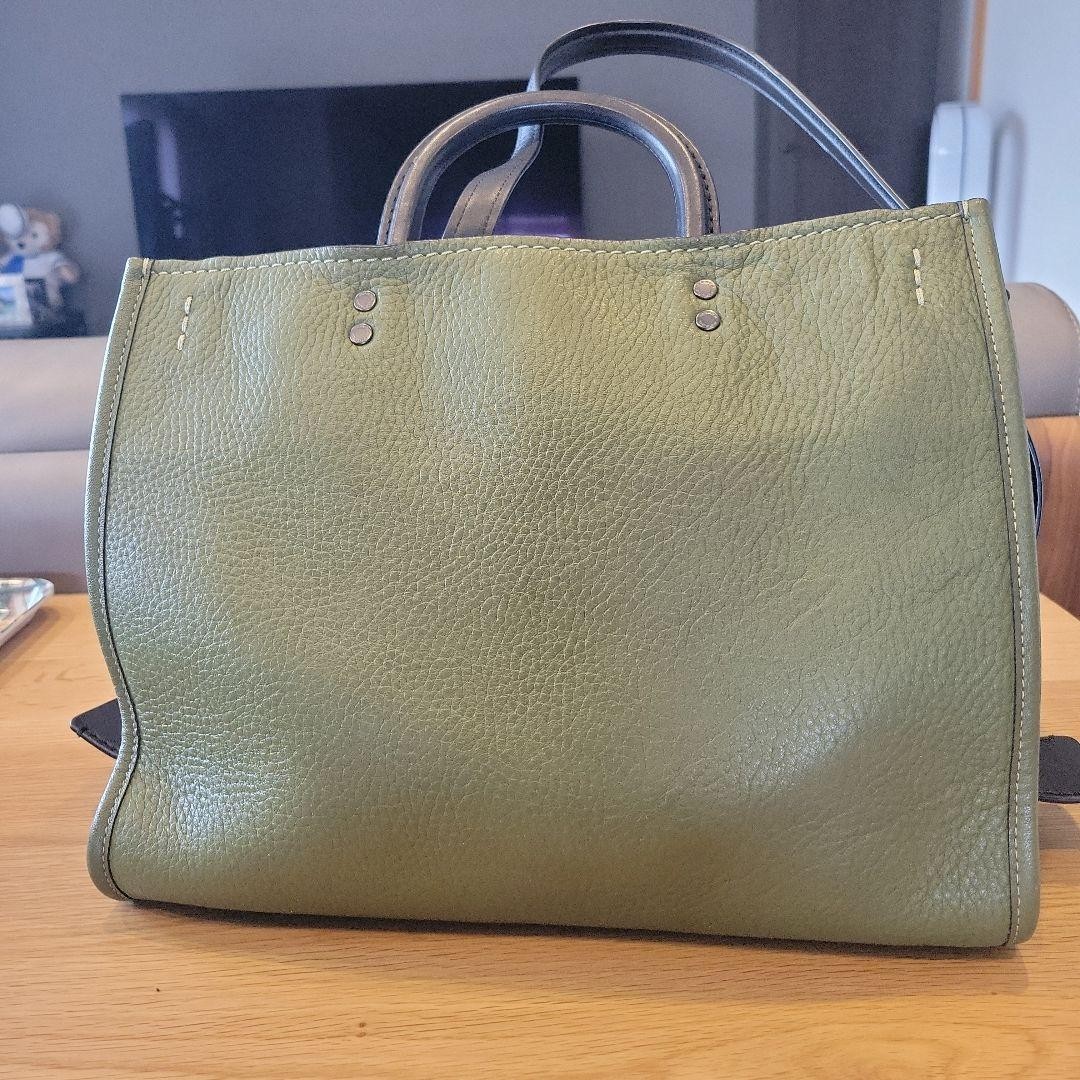 COACH Rogue 38124 Olive Green Leather 2way Tote Shoulder Bag with Charm Rare