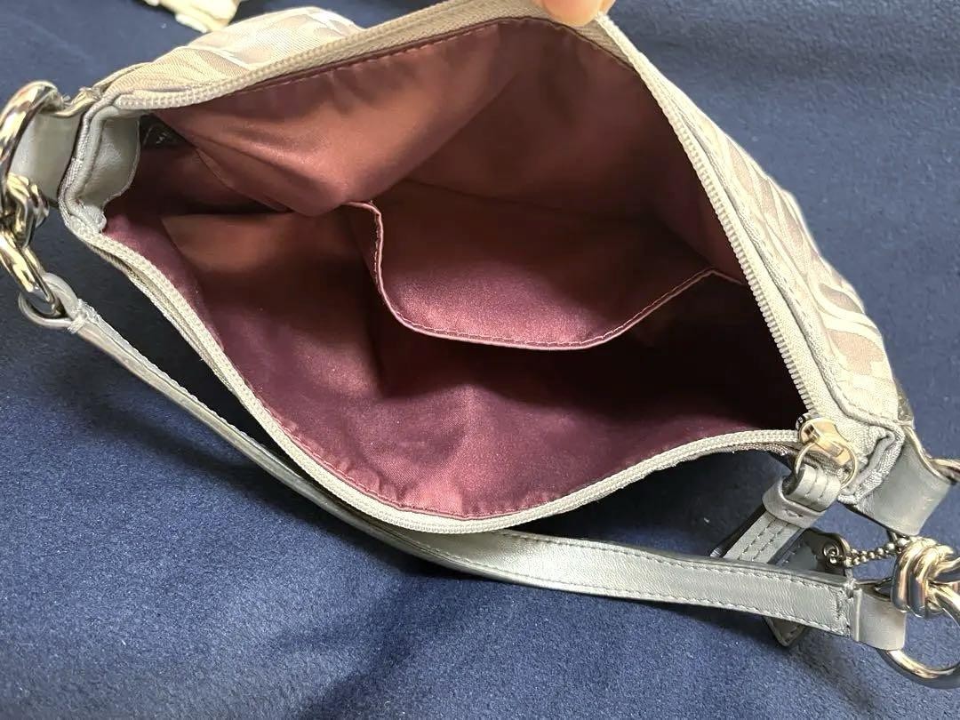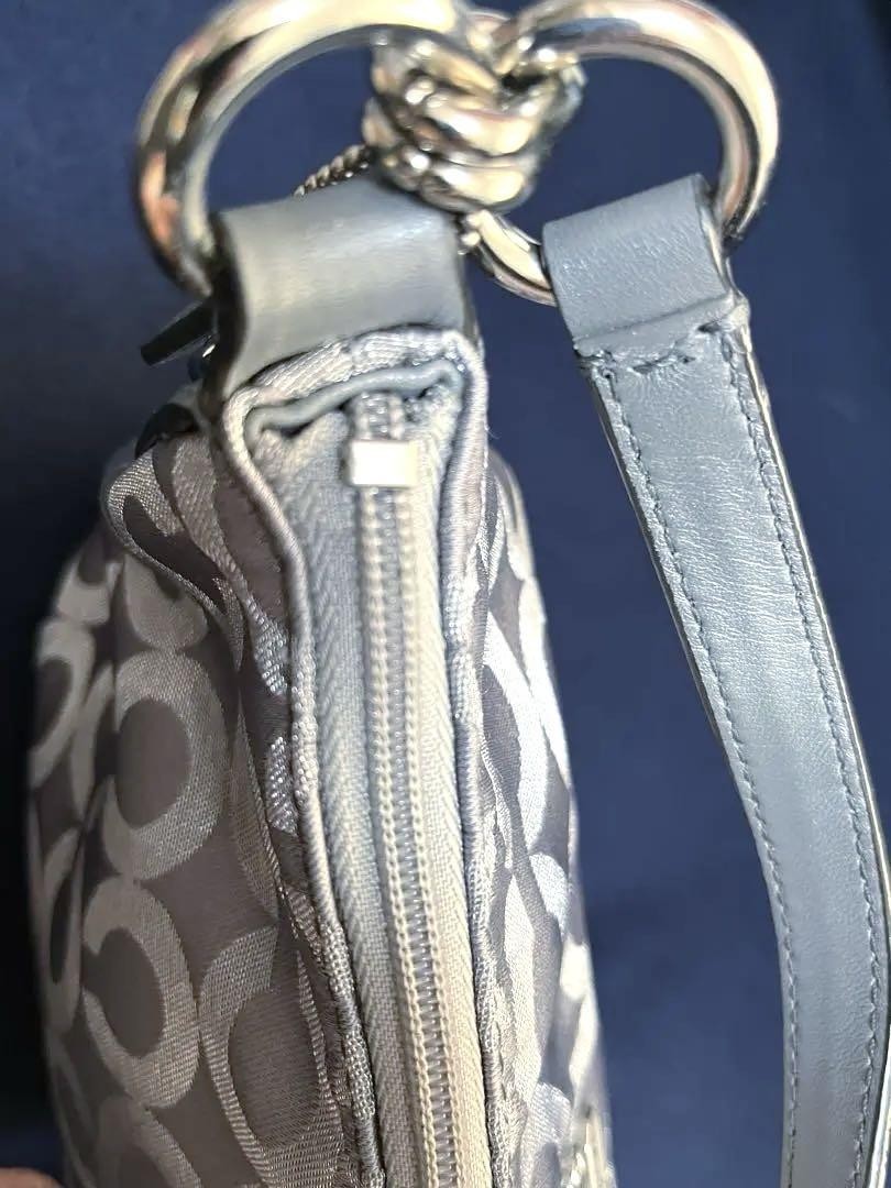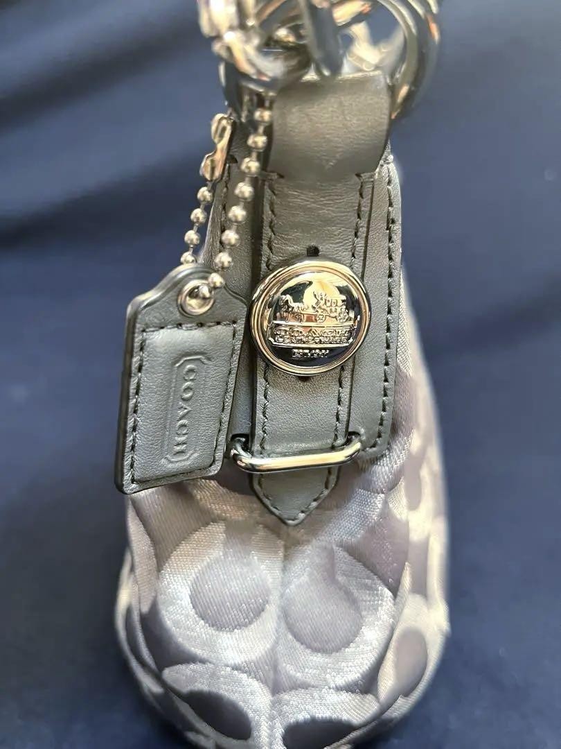 COACH Gray Silver Shoulder Bag Signature Coach For Woman Japan Used