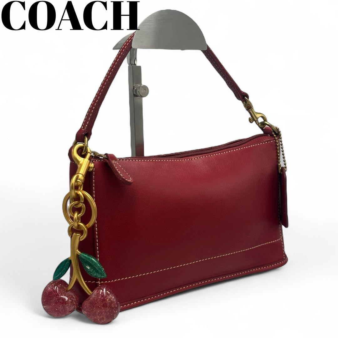 Vintage COACH Red Leather Accessory Pouch Mini Handbag Authentic From Japan