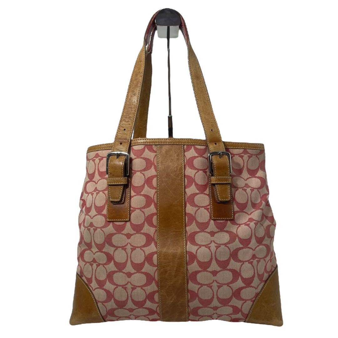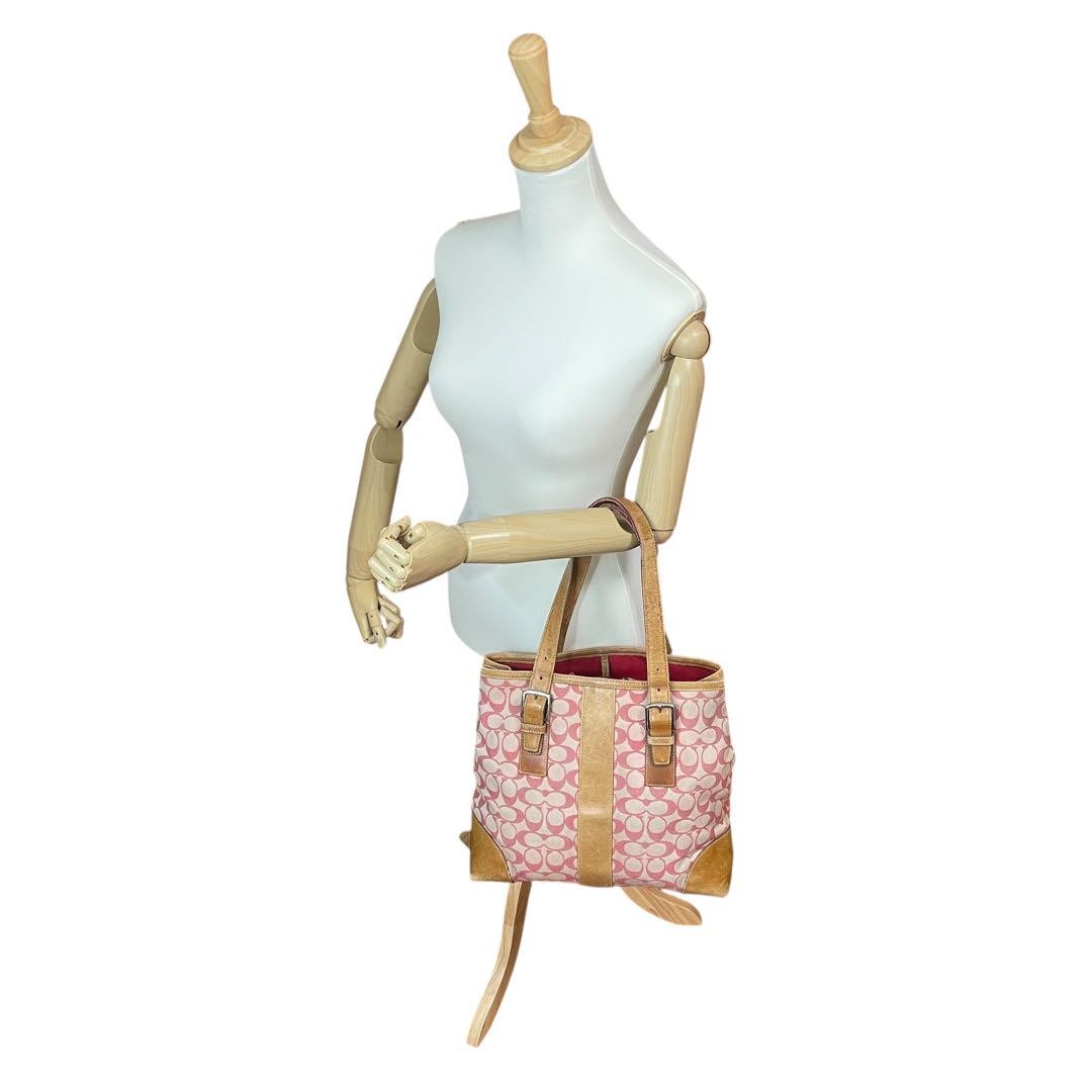 Rare COACH Signature One Shoulder Bag Pink Beige A024
