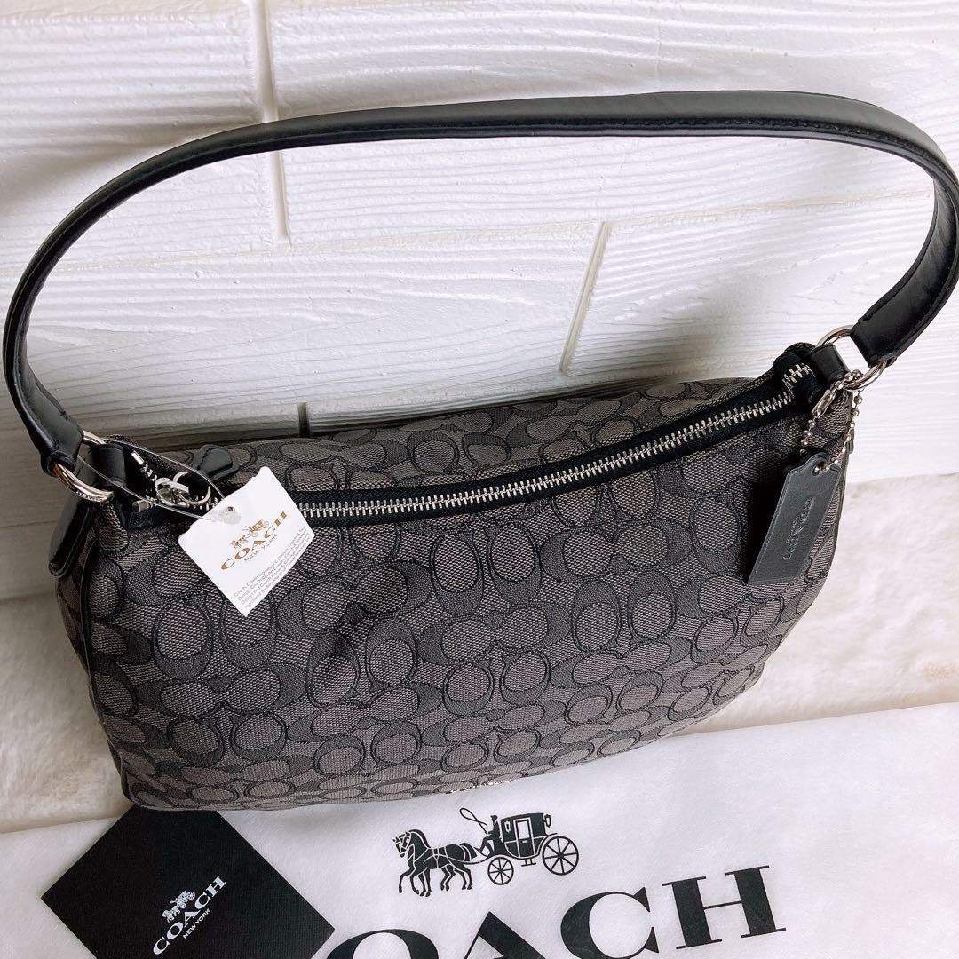 COACH one-shoulder bag in black leather and canvas with tags #PGC8GP