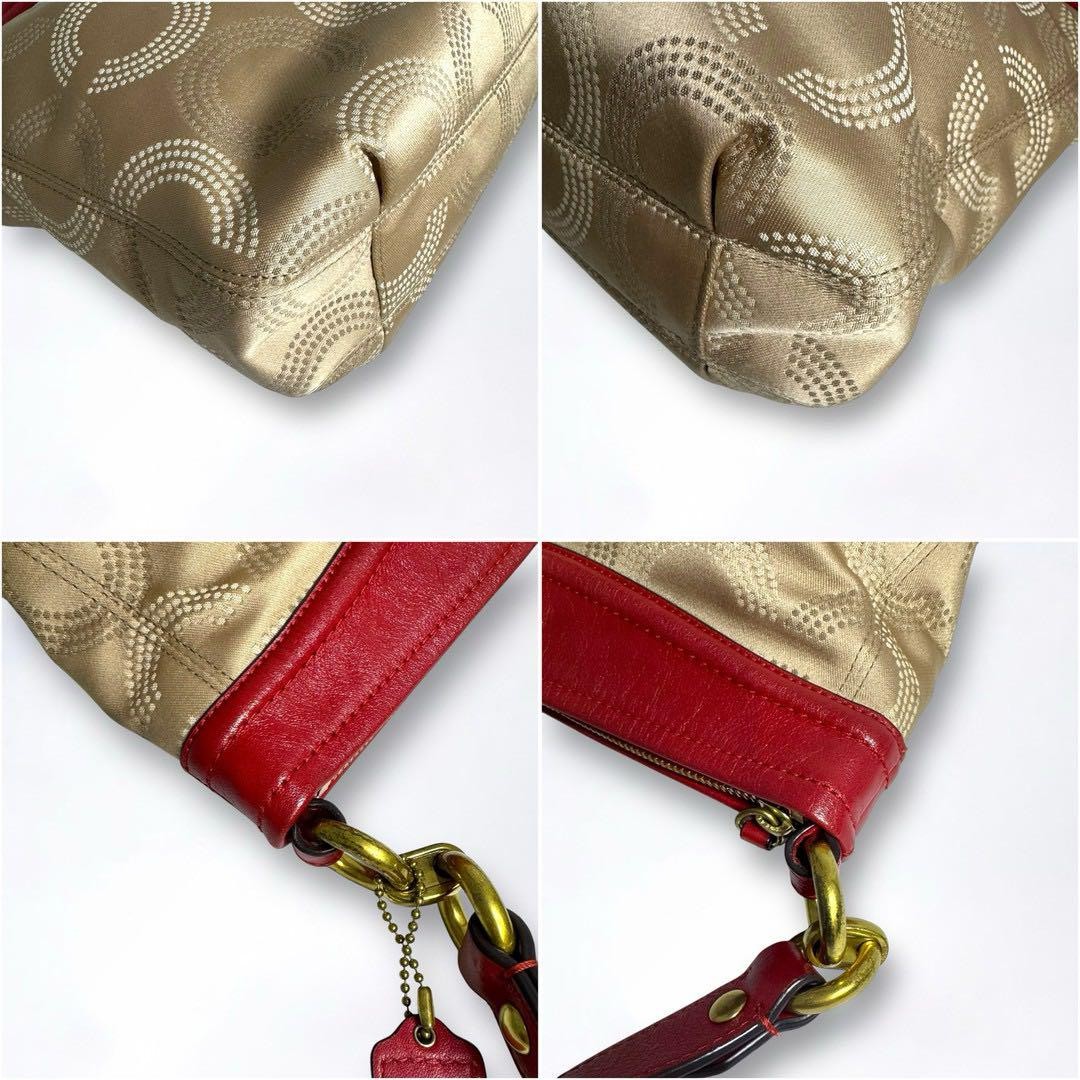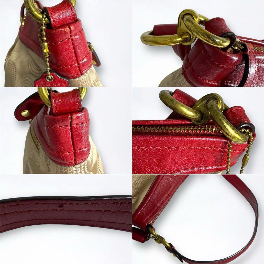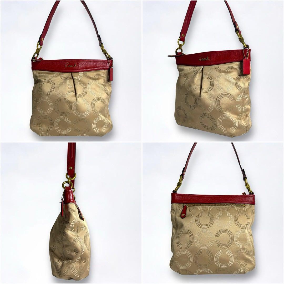 COACH Canvas Op Art Signature One Shoulder Bag Beige From JAPAN