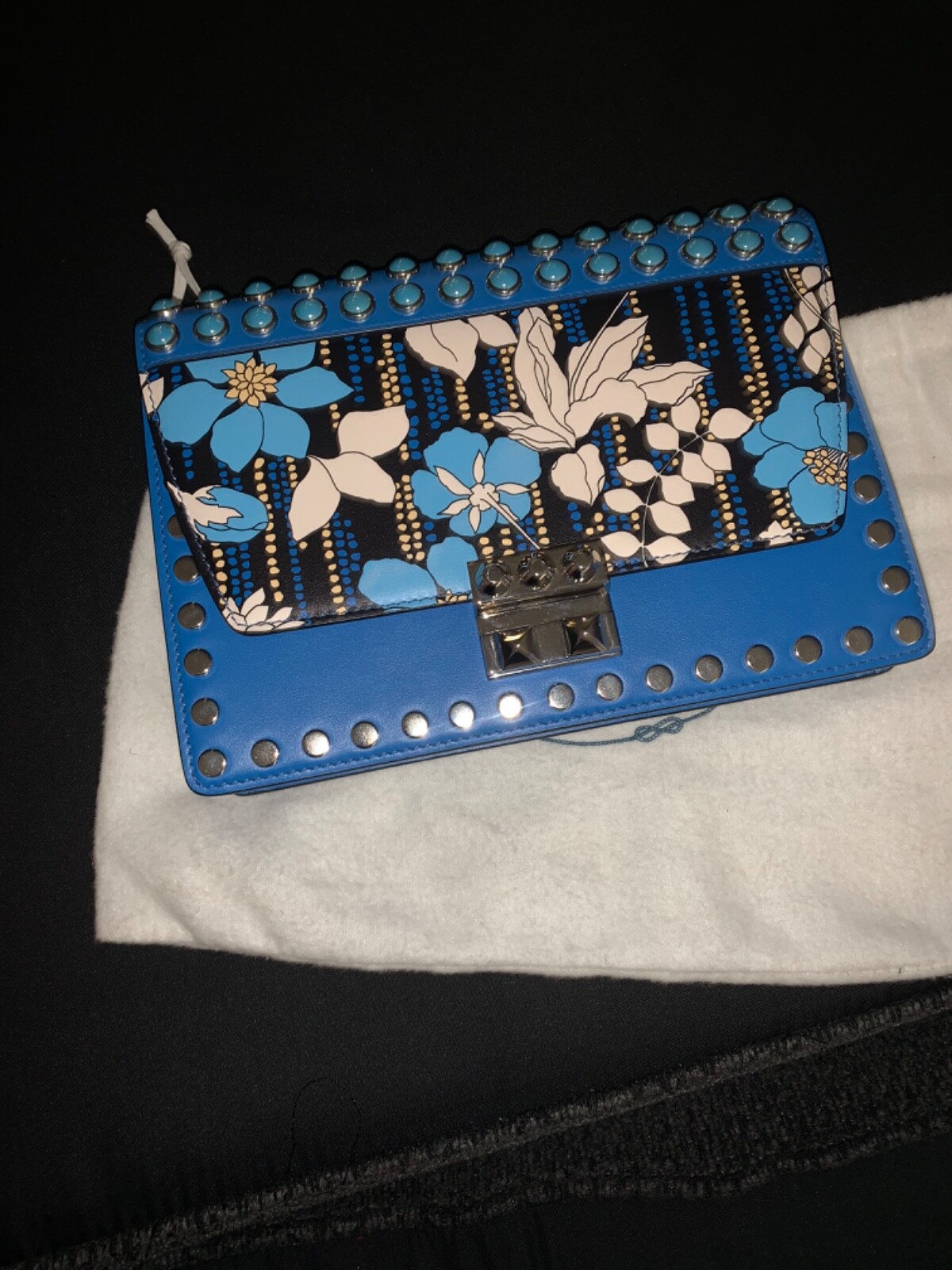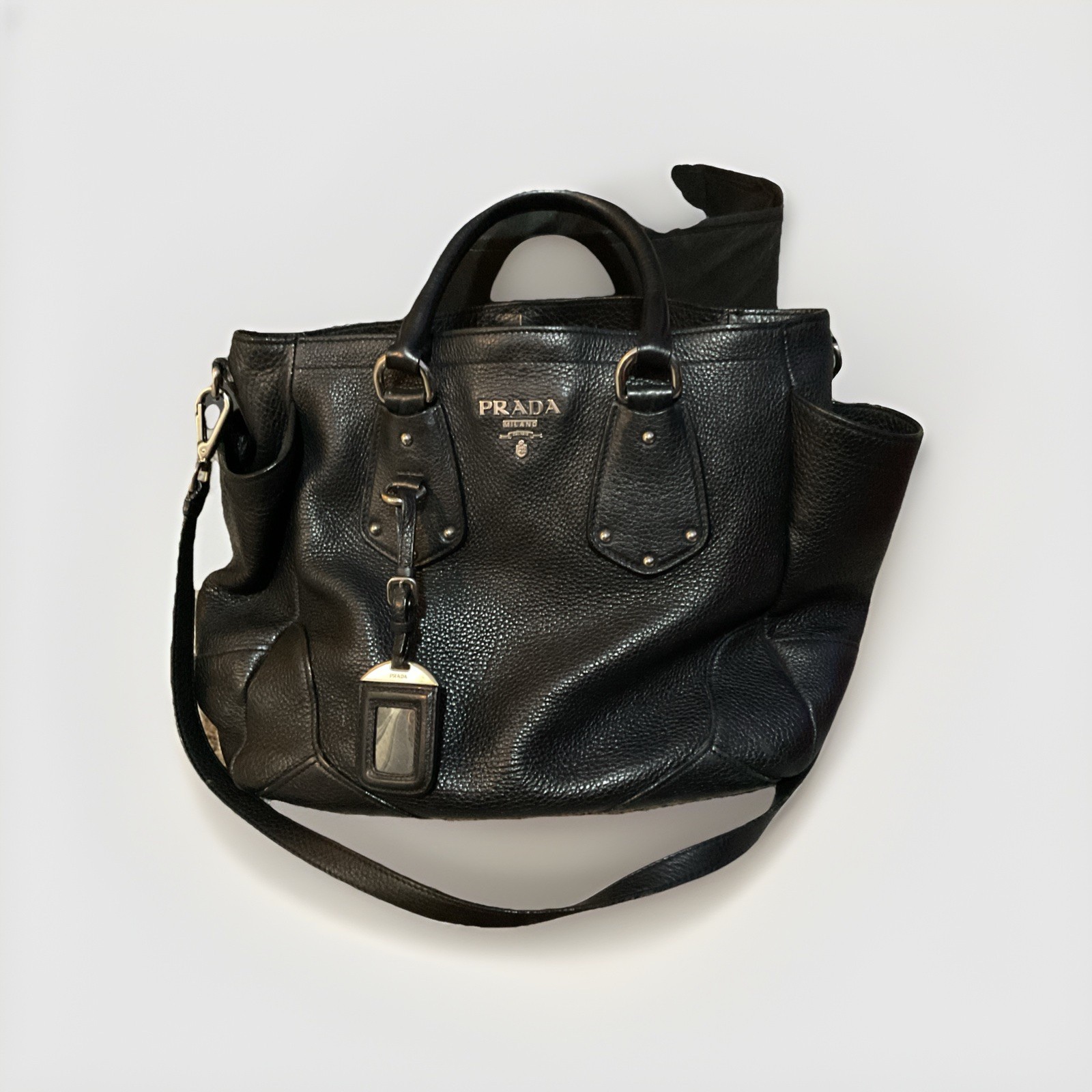 Original PRADA Milano Blue Leather Bag with Cards Excellent Condition