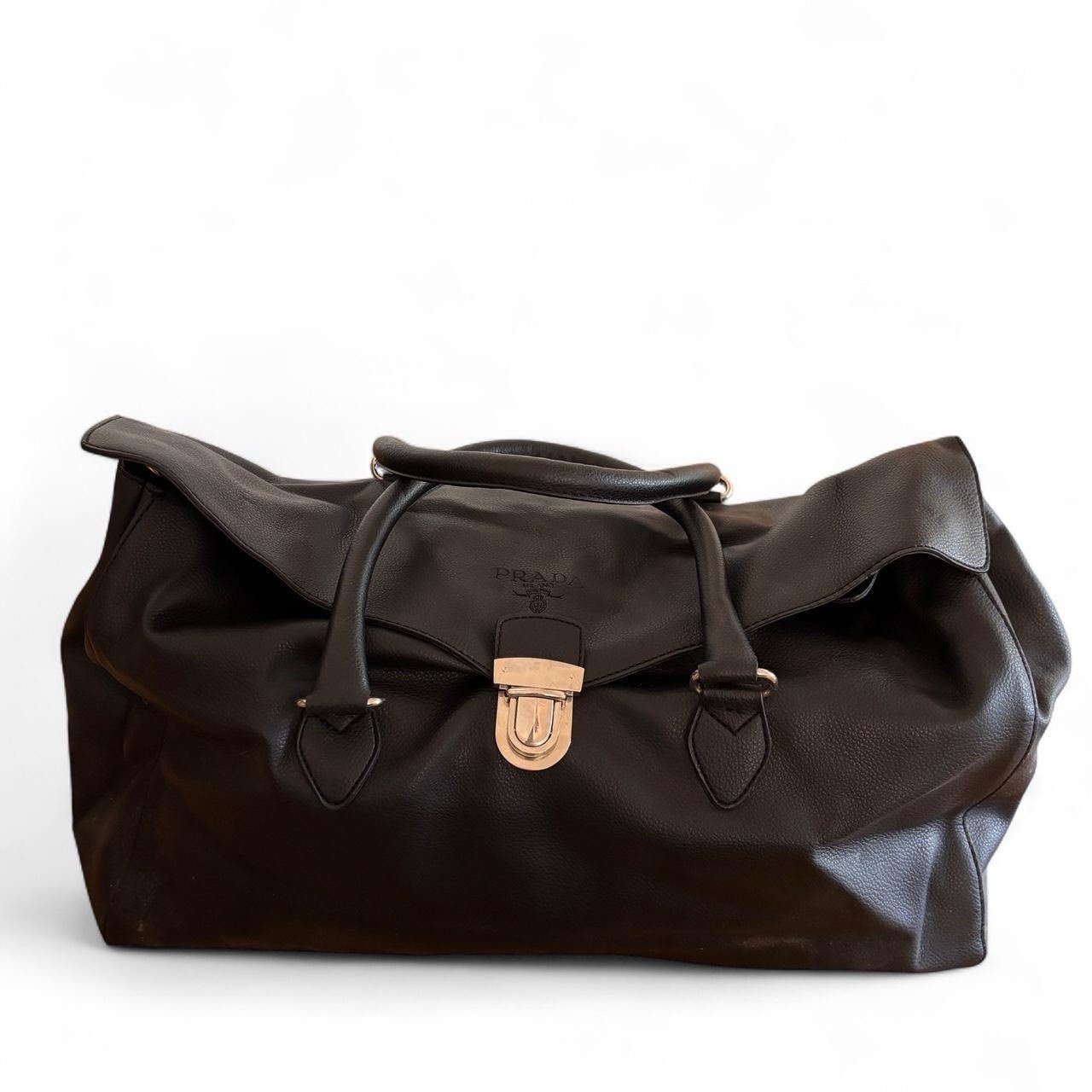 Authentic Prada black leather duffle bag